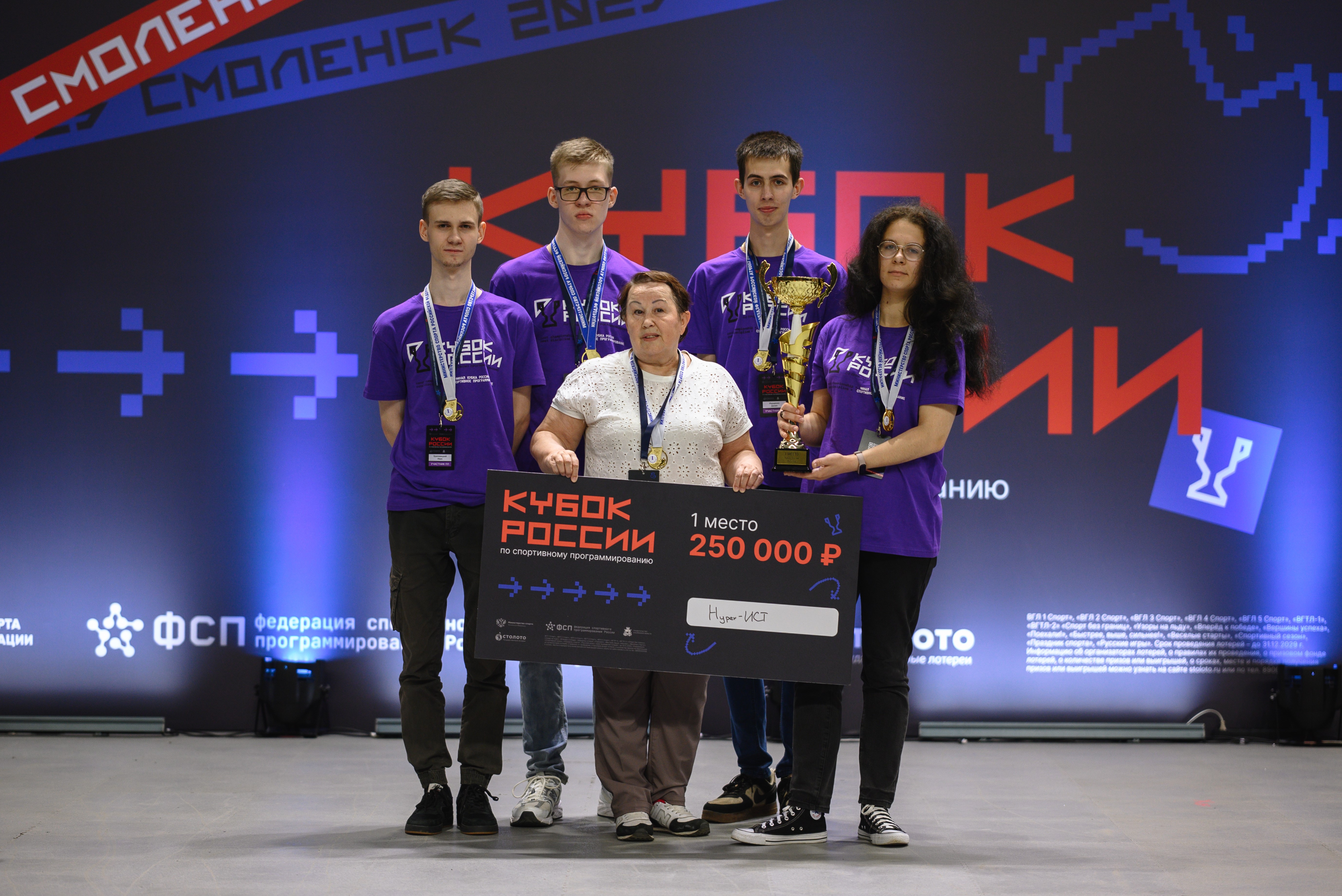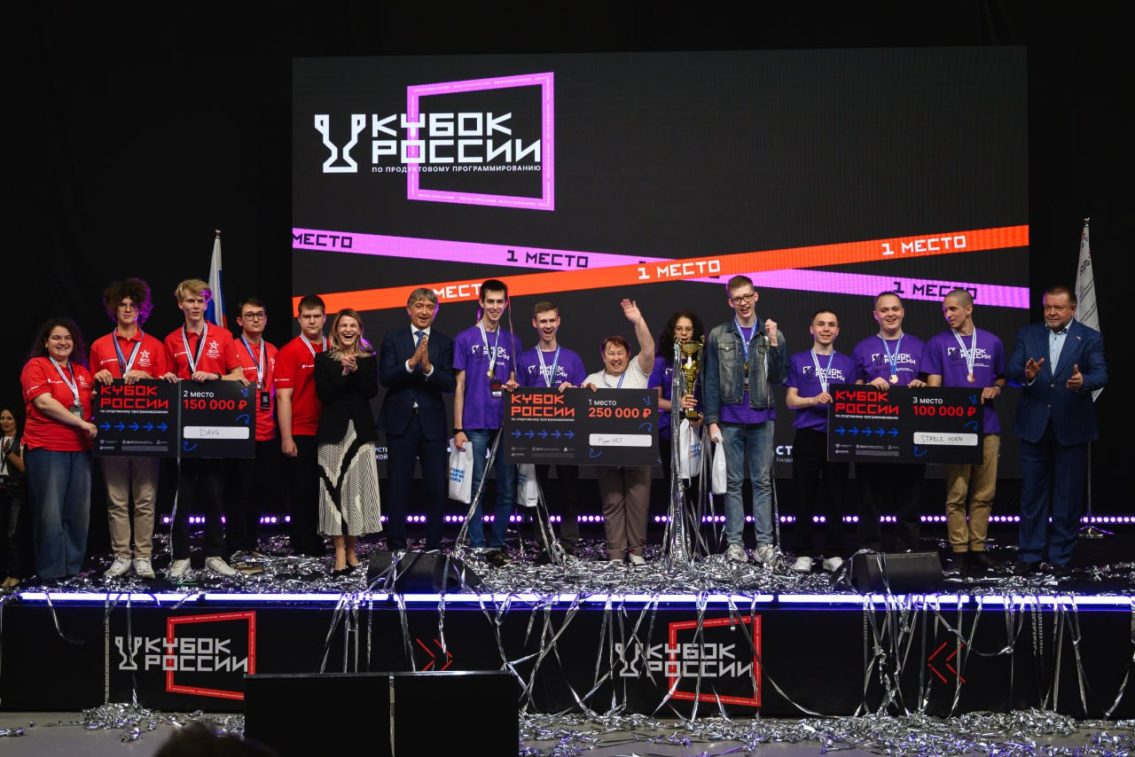 под руководством тренера Савковой Елены Осиповны, завоевала КУБОК РОССИИ ПО СПОРТИВНОМУ ПРОГРАММИРОВАНИЮ — 2025 в направлении “Продуктовое программирование”!